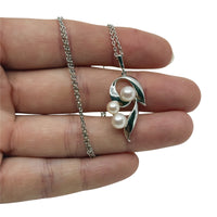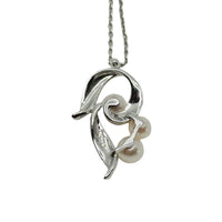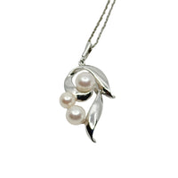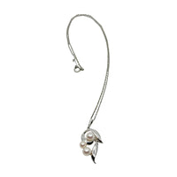Vintage Leaf Mid Century Japanese Saltwater Akoya Cultured Pearl Pendant- Sterling Silver 16 Inch