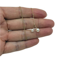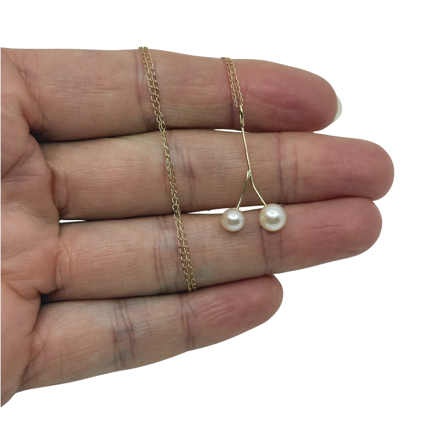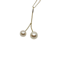 Petite Twin Branch Japanese Saltwater Akoya Pearl Drop Vintage Pendant- 14K Yellow Gold