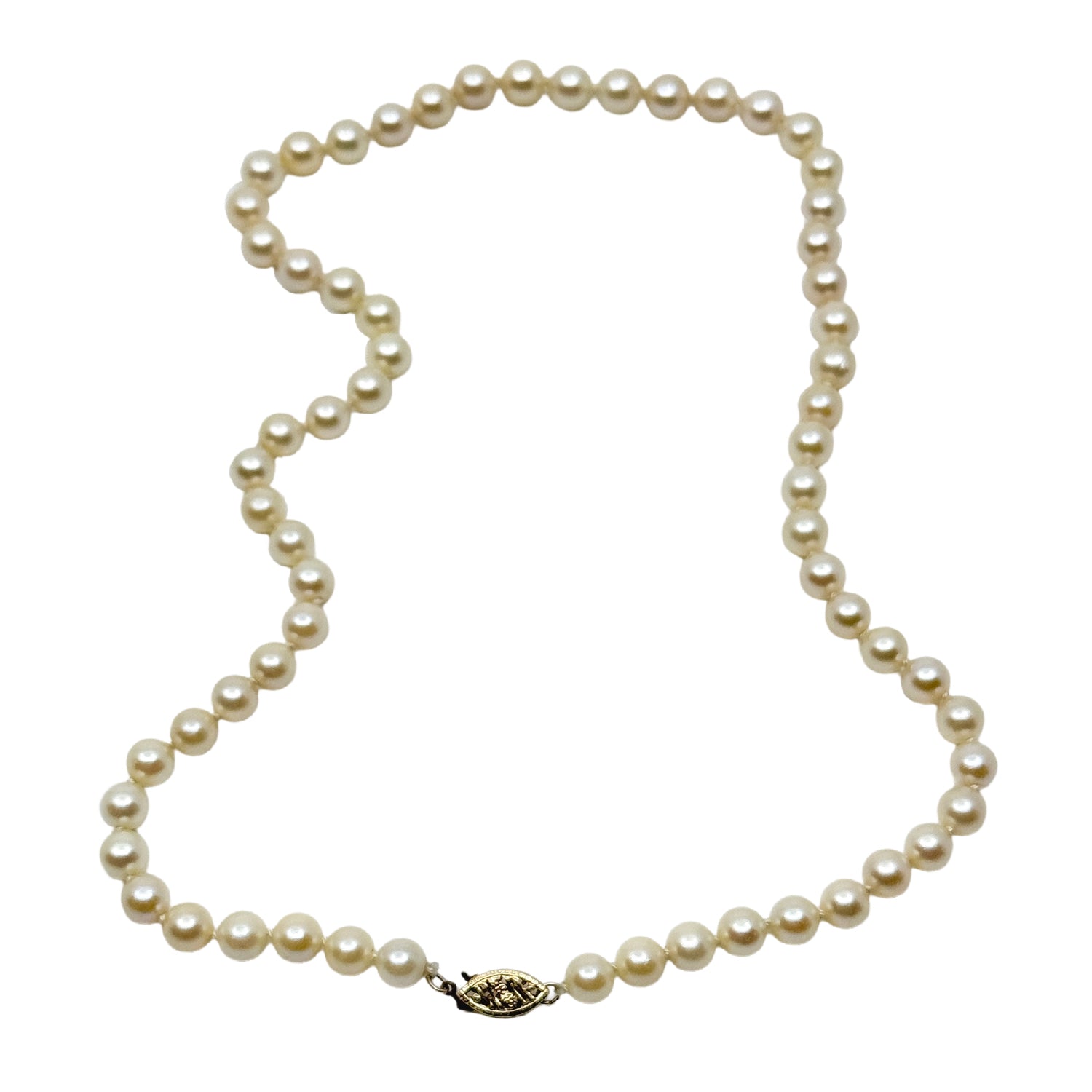 6mm Vintage Japanese Saltwater Akoya Cultured Pearl Necklace - 14K Yellow Gold 17.50 Inch