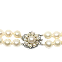 Floral Halo Japanese Saltwater Akoya Cultured Pearl Double Strand Necklace-Sterling Silver 15.50-17 Inch