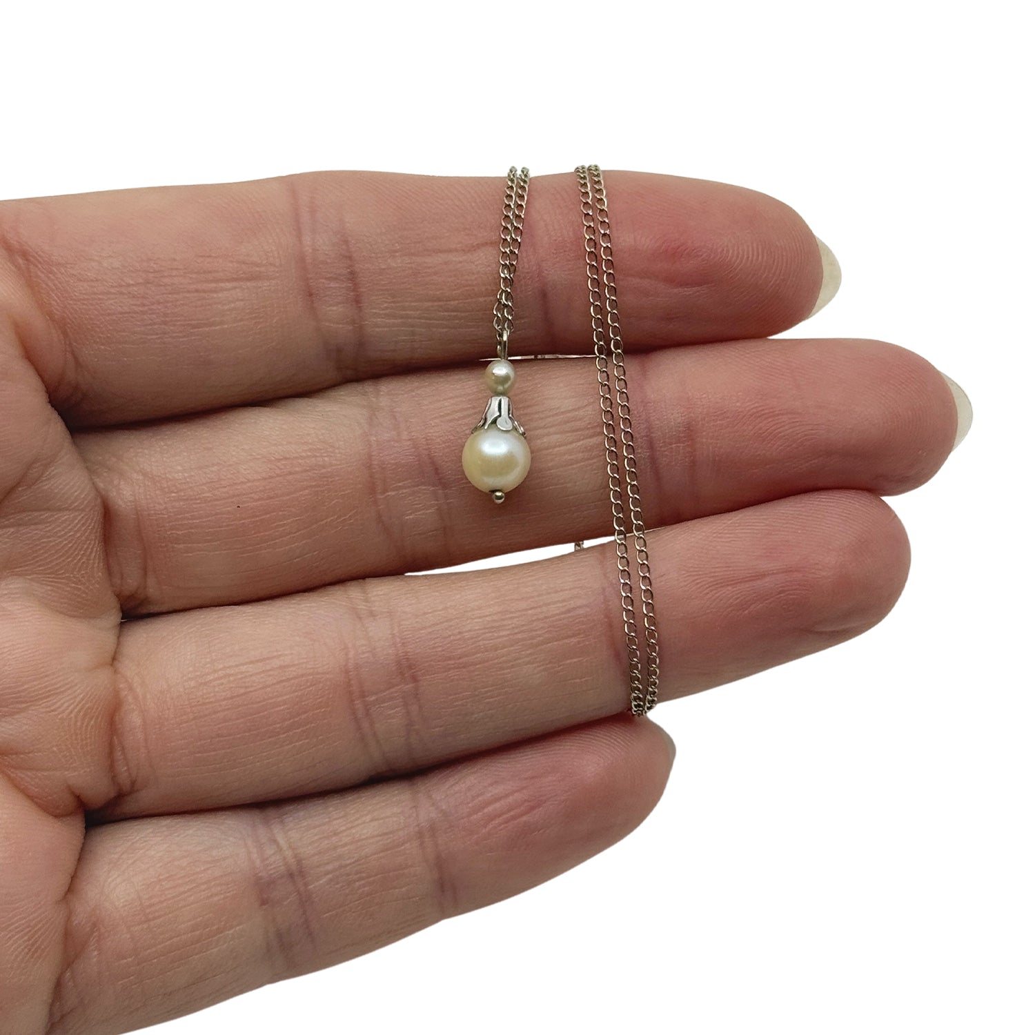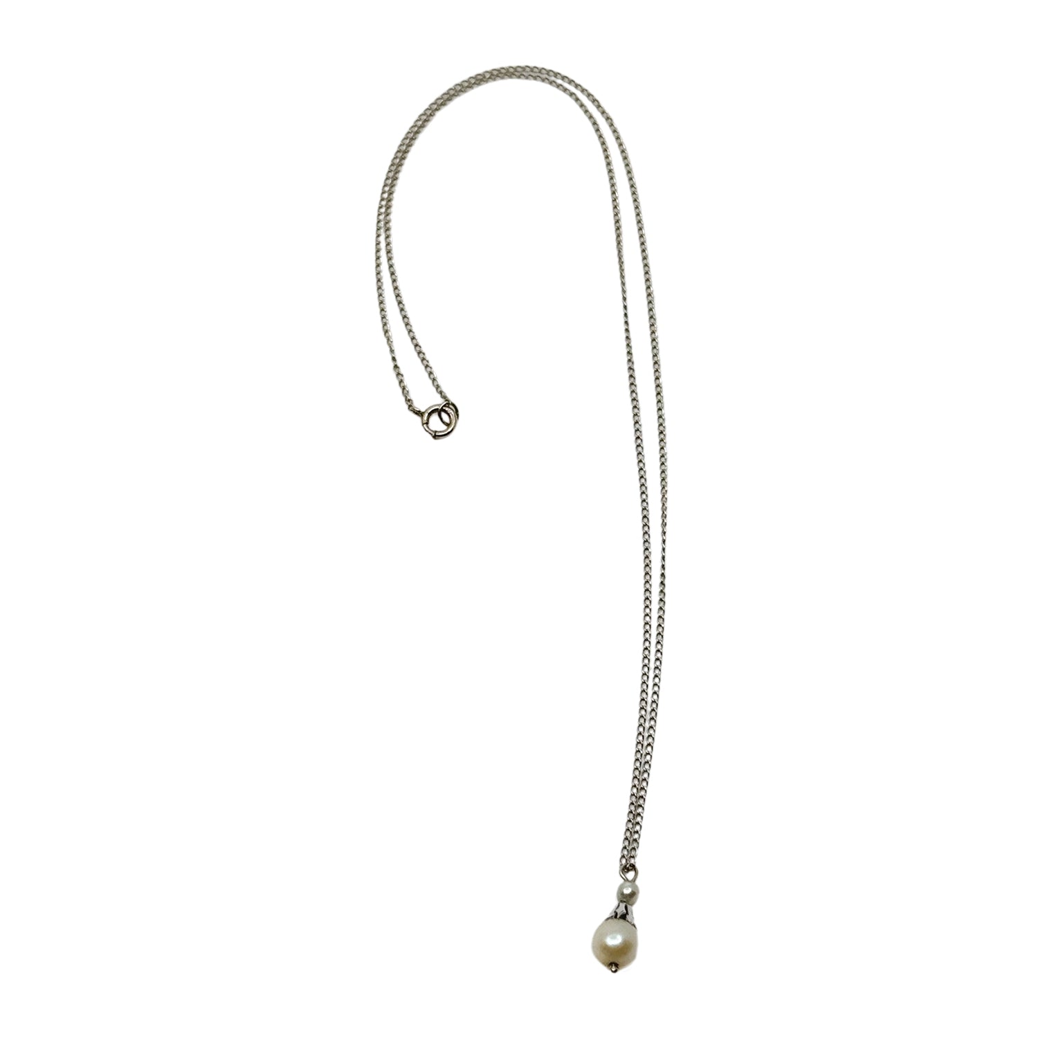 Mid Century Petite Japanese Cultured Akoya Pearl Pendant- 10K White Gold Necklace 15 Inch