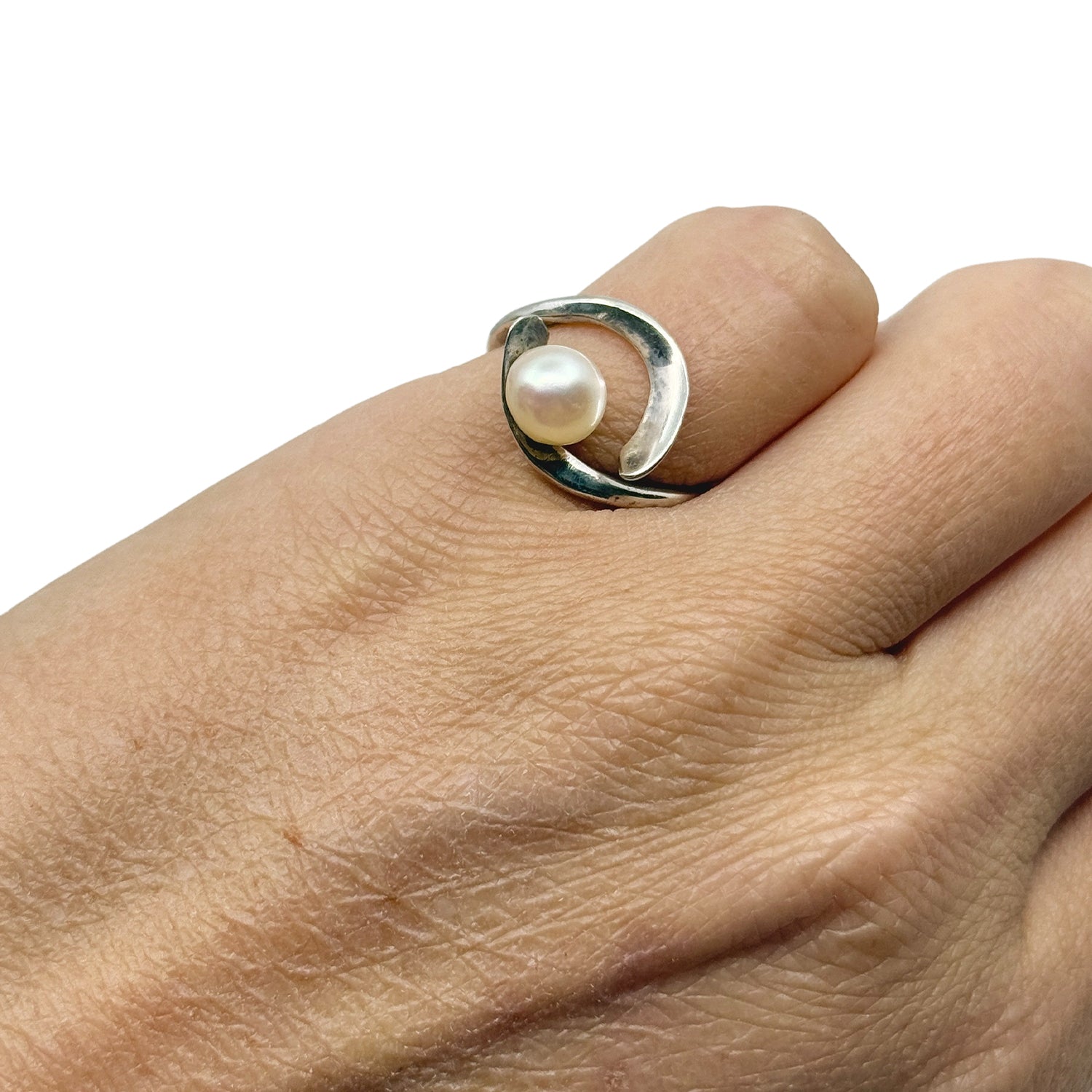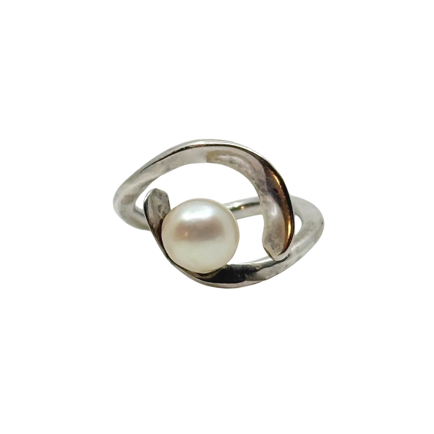 Handmade Bypass Solitaire Japanese Saltwater Akoya Cultured Pearl Vintage Ring- Sterling Silver Sz 5