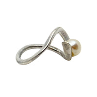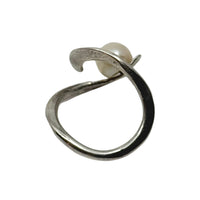 This is a lovely mid-century handmade Japanese akoya saltwater cultured pearl & sterling silver bypass ring.