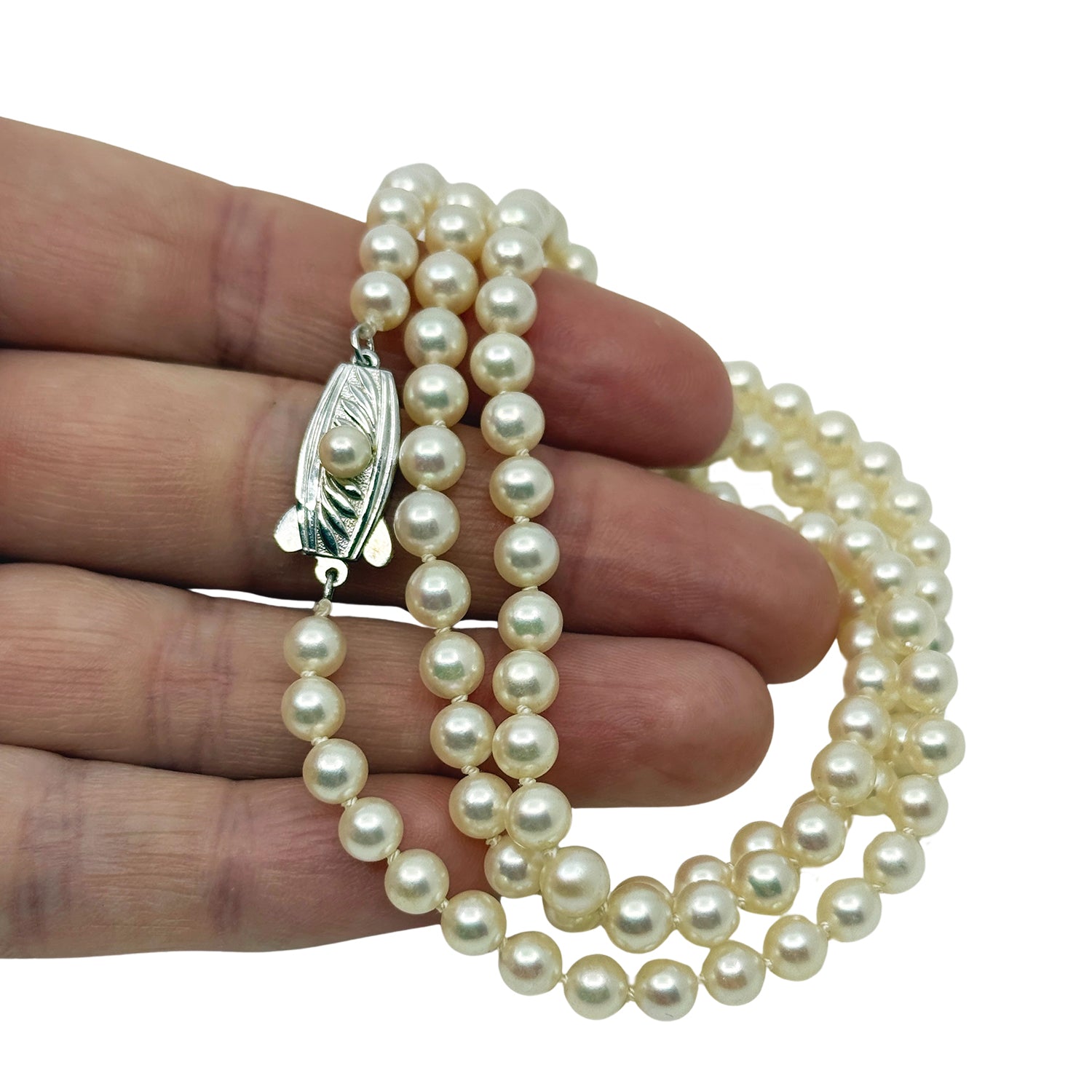 5.00-5.50mm Vintage Mikimoto Japanese Saltwater Akoya Cultured Pearl Necklace - Sterling Silver 24 Inch