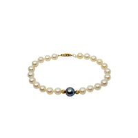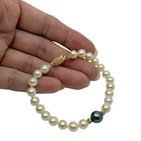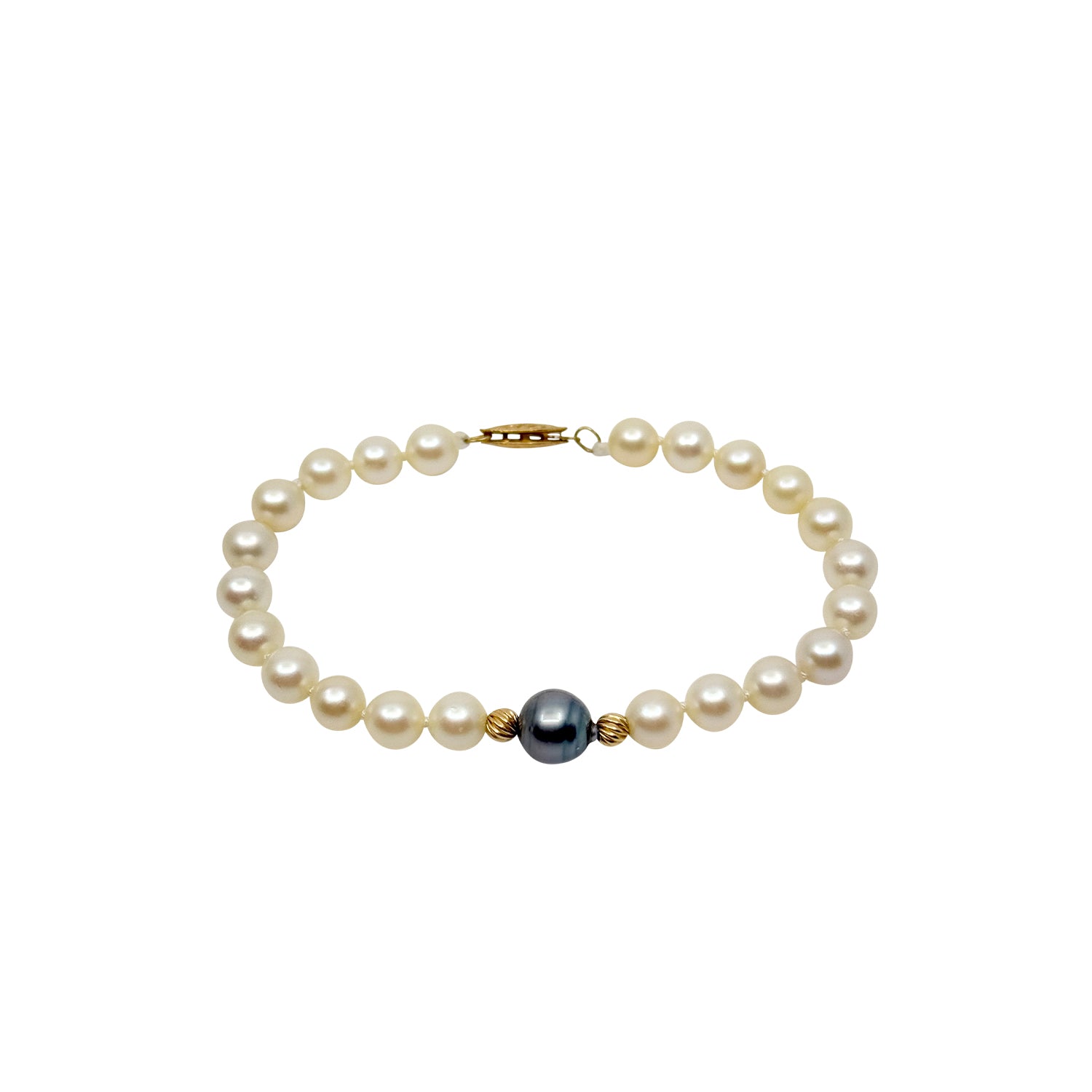 Black Tahitian & Japanese Saltwater Akoya Cultured Pearl Vintage Bracelet- 14K Yellow Gold