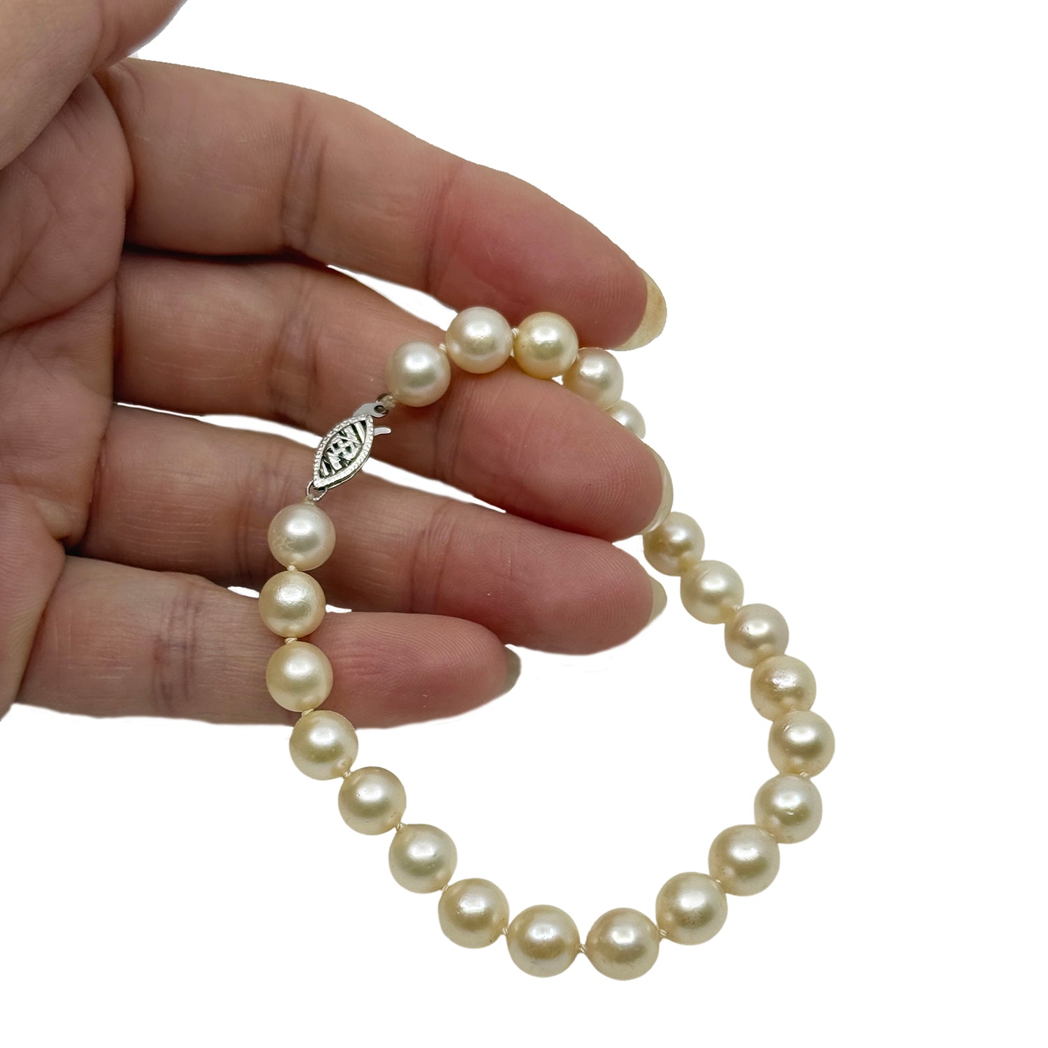 7.50mm Vintage Japanese Saltwater Akoya Cultured Pearl Bracelet- 14K White Gold