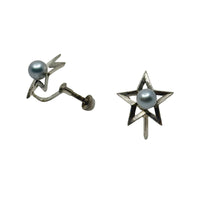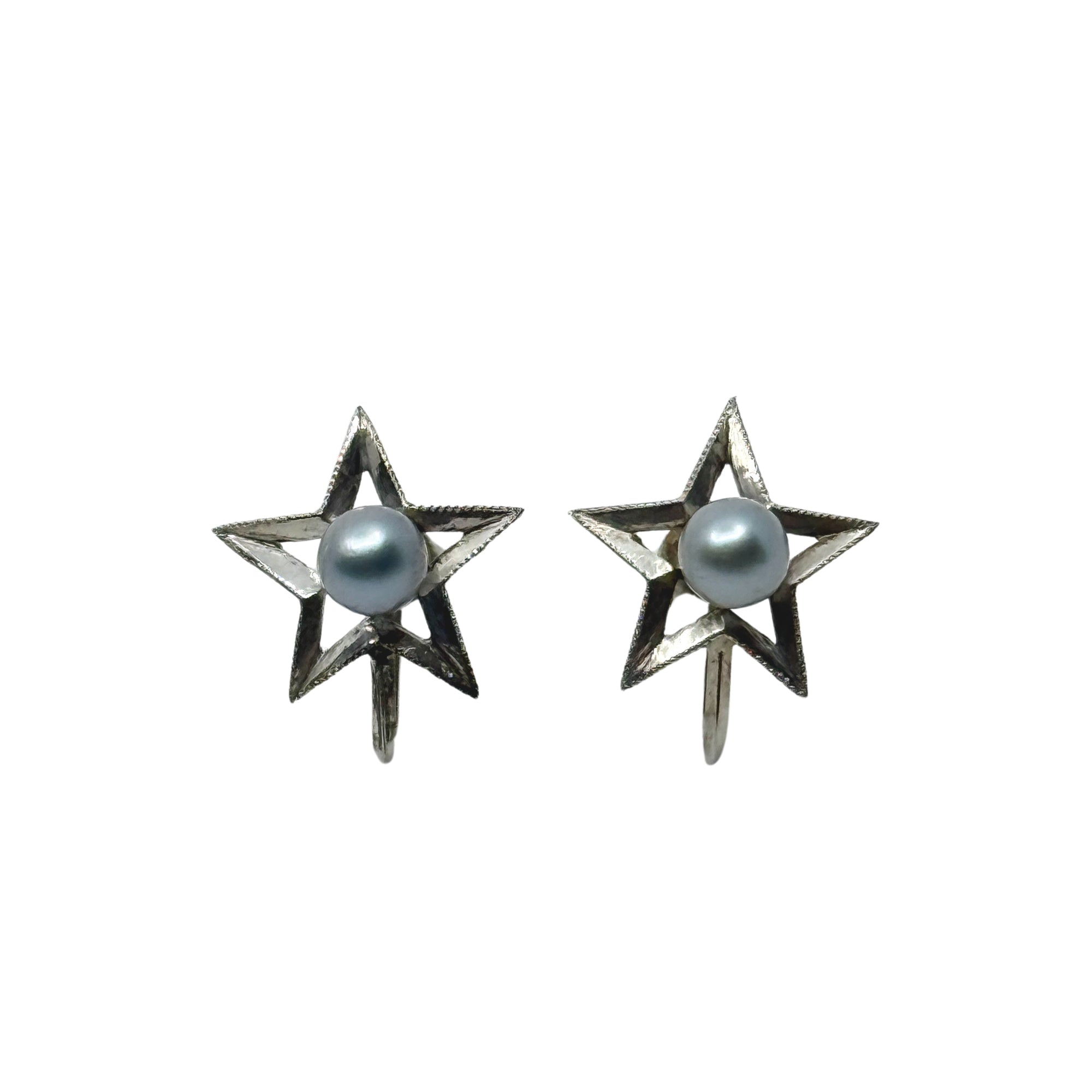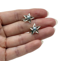 Blue Star Japanese Akoya Saltwater Cultured Pearl Screwback Earrings- Sterling Silver
