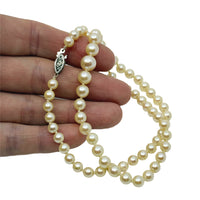 Cream Graduated Japanese Saltwater Akoya Cultured Pearl Mid Century Necklace - 10K White Gold 17 Inch
