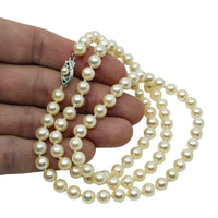 Retro Japanese Saltwater Akoya Cultured Pearl Mid Century Necklace - 14K White Gold 23.25 Inch