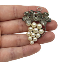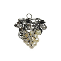 Vintage Grape Japanese Saltwater Akoya Cultured Pearl Engraved Brooch- Sterling Silver