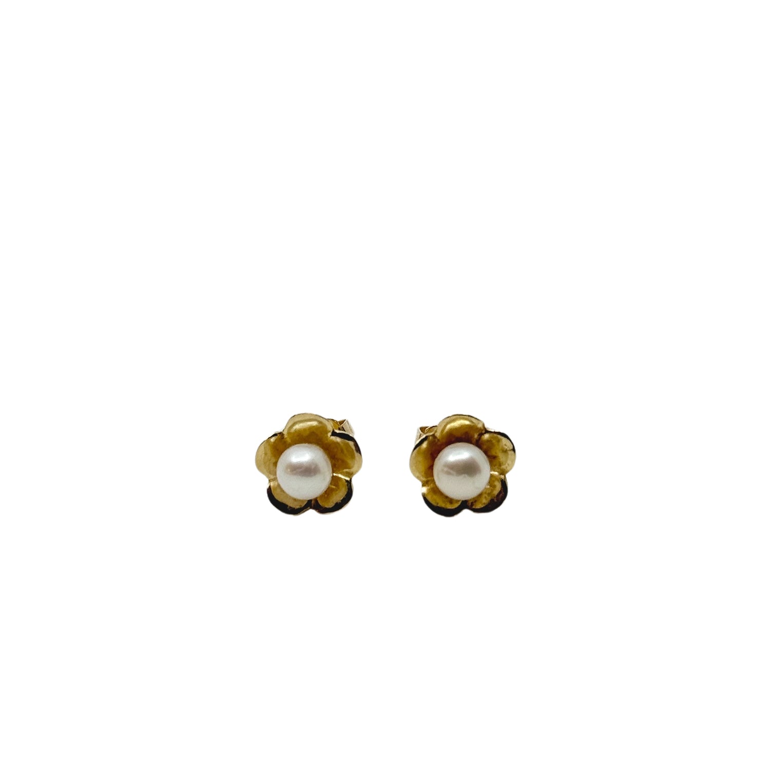 These are a cute pair of vintage 14K solid yellow gold and Japanese saltwater akoya cultured pearl sakura or cherry blossom earrings.