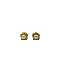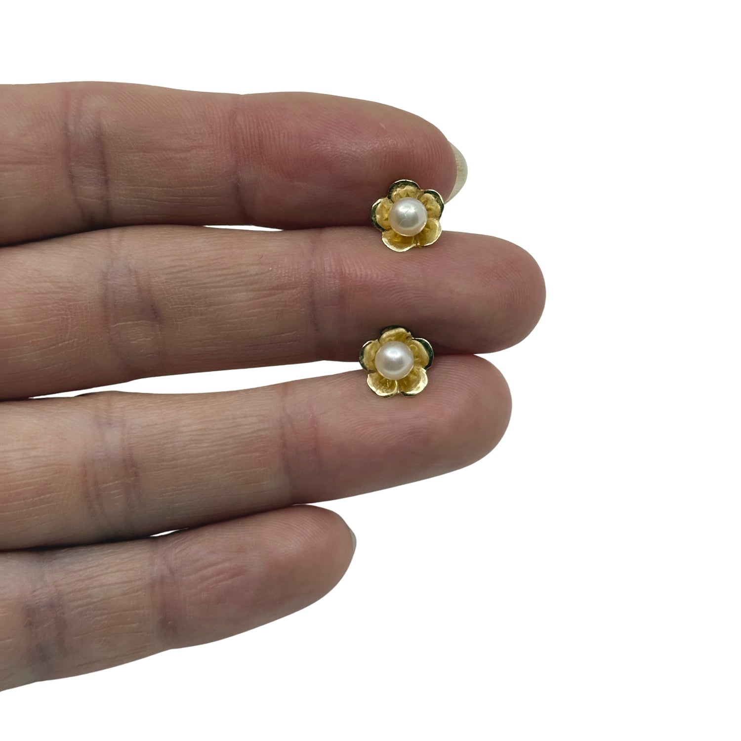 Petite Cherry Blossom Japanese Akoya Saltwater Cultured Pearl Stud Pierced Earrings- 14K Yellow Gold