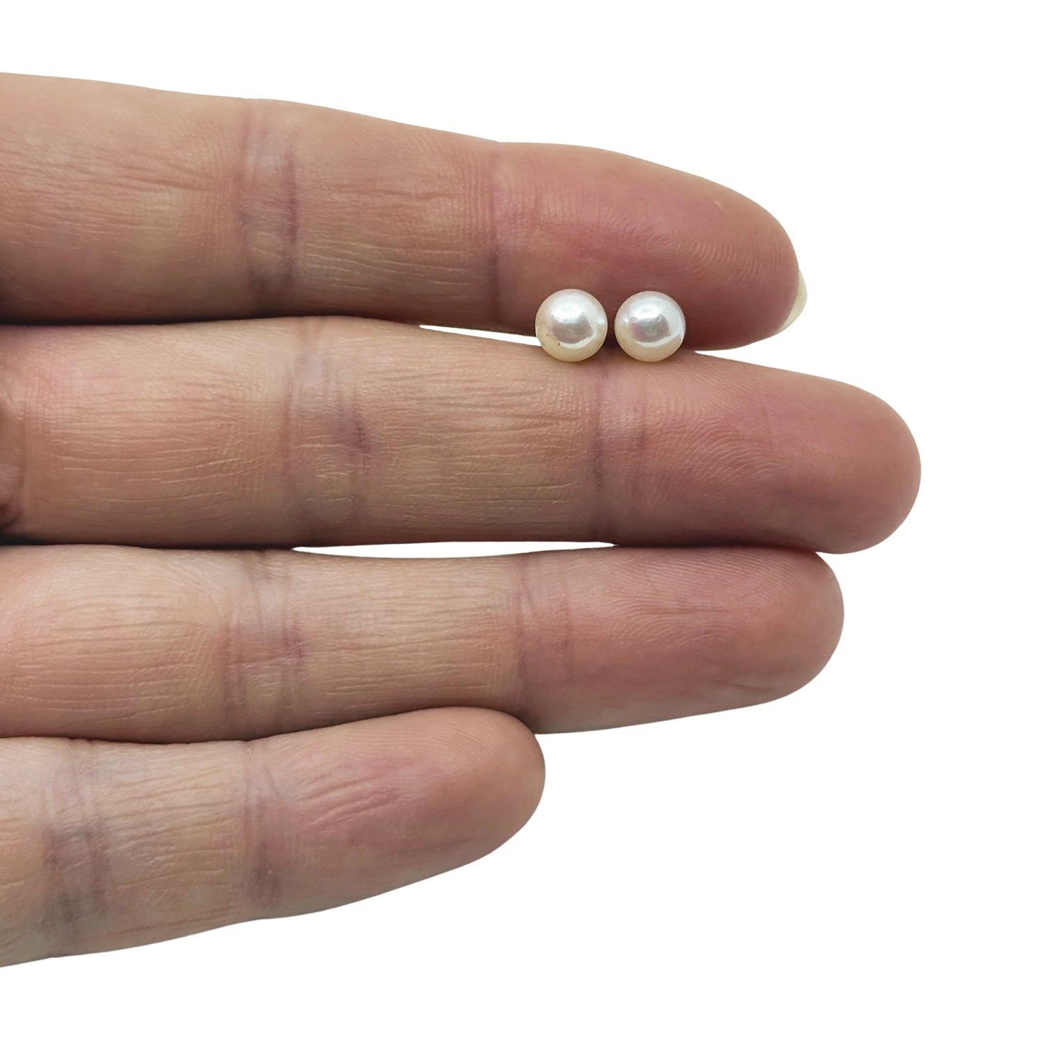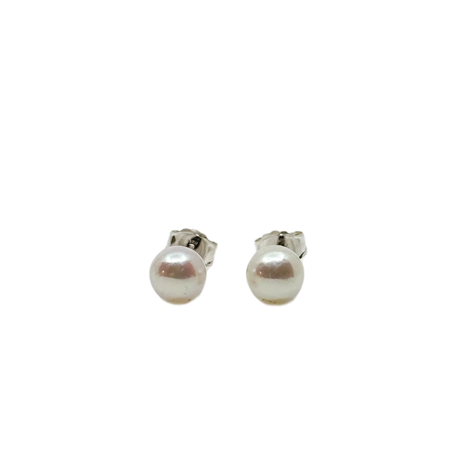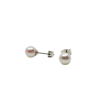 Vintage 6.00mm Japanese Akoya Saltwater Cultured Pearl Solitaire Stud Pierced Earrings-Sterling Silver