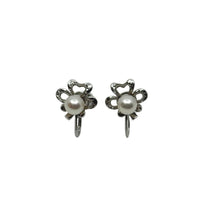 These are a lovely pair of engraved Mikimoto Japanese akoya saltwater cultured pearl clover leaf screwback earrings.